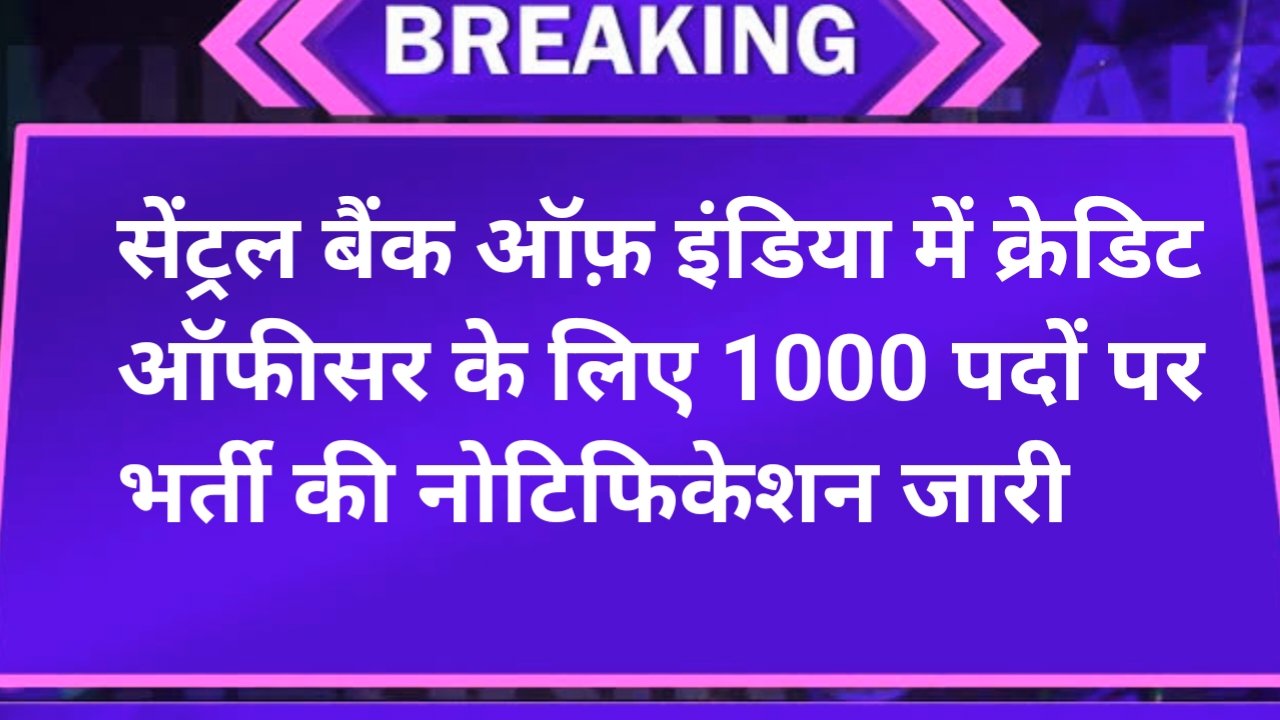 Central Bank of India Vacancy 2025: सेंट्रल बैंक ऑफ़ इंडिया में क्रेडिट ऑफीसर के लिए 1000 पदों पर भर्ती की नोटिफिकेशन जारी
